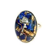 Bague Orgonite Cabochon Ovale 25x18 mm Lapis Lazuli et Feuilles d'Or Support Argent 925 Pièce Unique N°BOA-LAPIS-4
