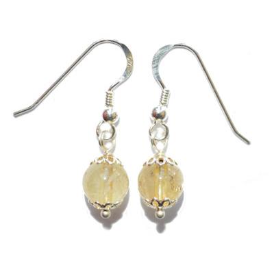 Boucles d'Oreilles en Citrine Pierre Boule et Argent 925