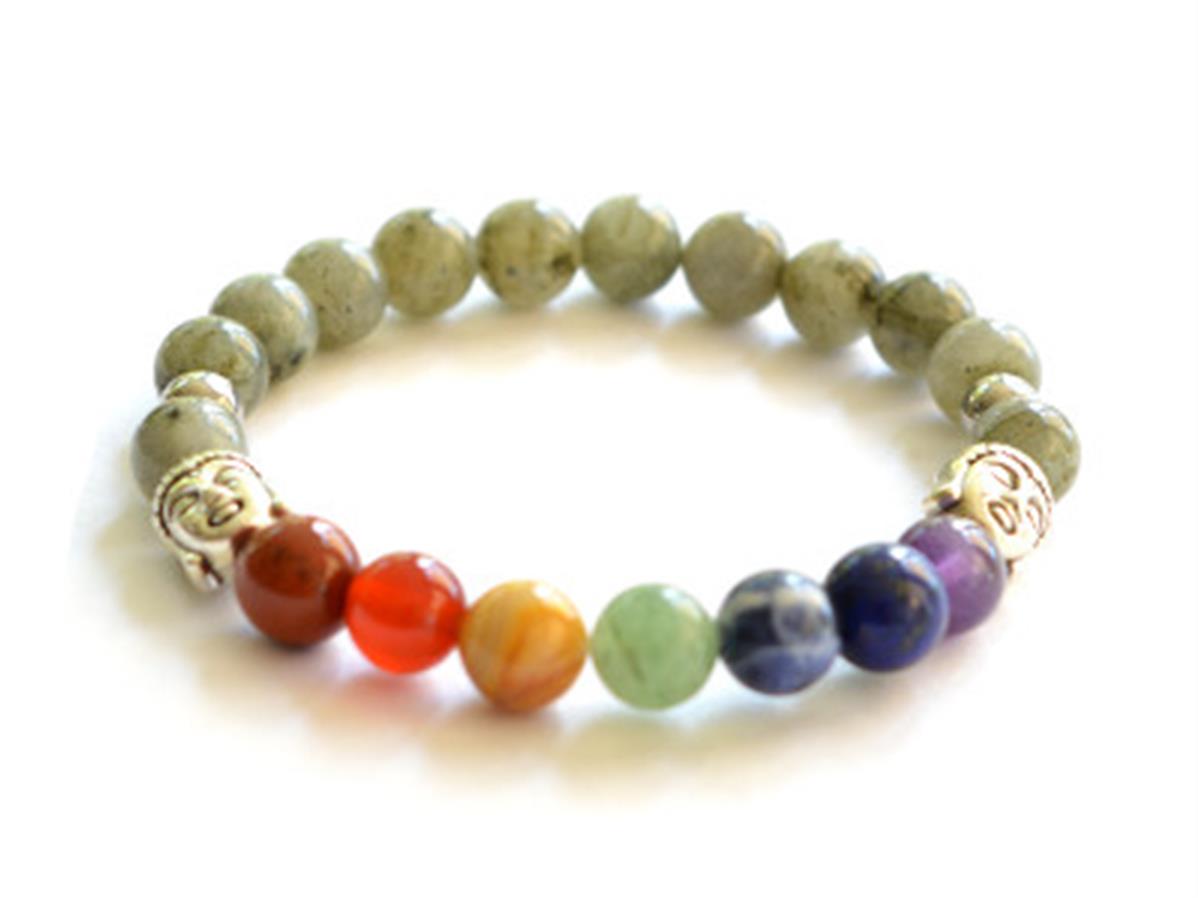Bracelet 7 Chakras Pierres Boules de Labradorite 8 mm et Bouddha