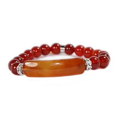 Bracelet Gourmette en Cornaline Pierres Boules de 8 mm et Coeur 12 mm