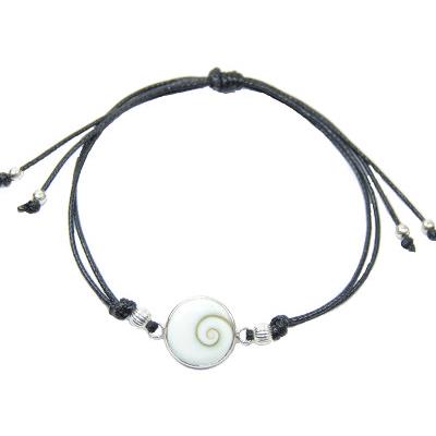 Très beau bracelet Oeil de Sainte Lucie réalisé en Argent 925 avec lacet Noir.