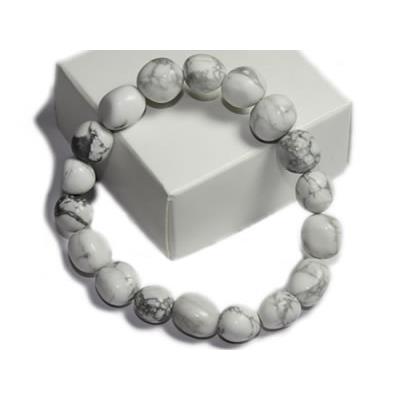 Bracelet en pierres roulées d'Howlite Blanche.