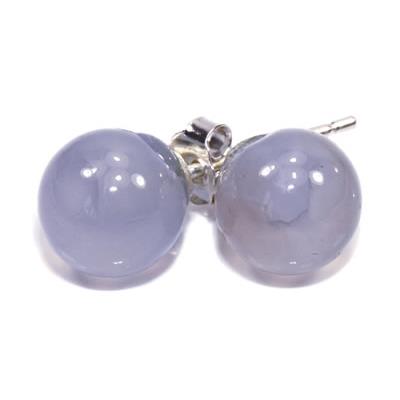 Calcédoine Bleue Puces d'Oreilles Rondes 6 mm et Argent 925