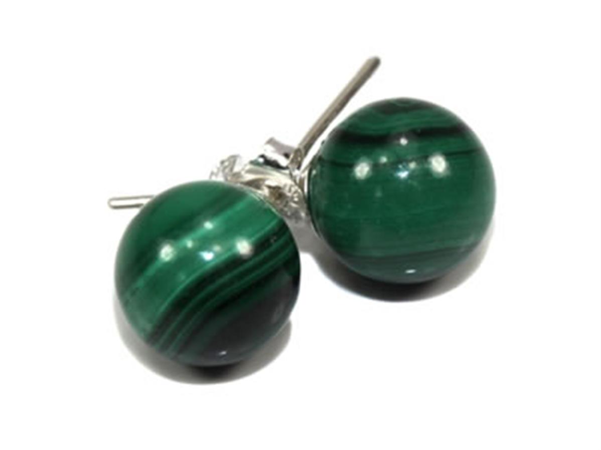 Les boucles d'oreilles Puces de Malachite sont réalisées avec des pierres