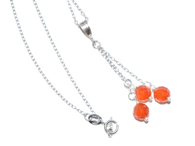 Cornaline Pendentif 3 Pierres Boules facettées et sa Chaînette en Argent 925