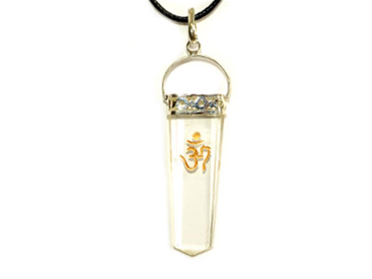 Très beau Pendentif en Pierre de cristal de roche gravé du symbole Om.