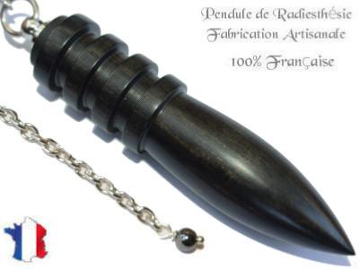 Très beau pendule de Radiesthésie style égyptien en bois d'ébène. Ce pendule est une création artisanale fabriqué avec soin dans notre atelier. Toutes les étapes nécessaires a sa fabrication sont exécutées a la main par