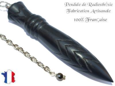 Très beau pendule de Radiesthésie égyptien Thot en bois d'ébène gravé a la main. Ce pendule est une création artisanale fabriqué et gravé avec soin dans notre atelier. Toutes les étapes nécessaires a sa fabrication sont exécutées a la main par un artisan tourneur.